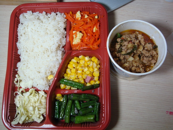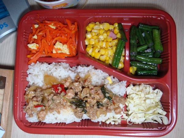 淋上打拋豬肉的便當...更覺得可口了...口味不會很辣,適合大眾口味