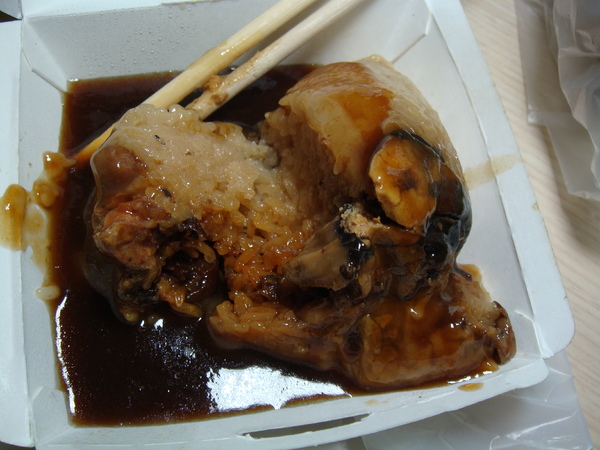 哇~大顆肉粽現身,有點壓扁了,不過料還是看得很清楚哦!